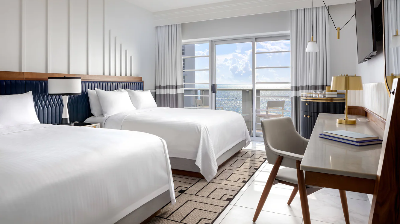 Nautilus. Este hotel me gustó mucho, está super bien ubicado y más aún si la idea es no alquilar auto por ejemplo, ya que está en 1825 Collins Avenue a 200 mts de la Lincoln Road, sobre la playa y cerca de todo. Las habitaciones no son muy grandes, pero son cómodas igual, tiene una linda área de piscinas y servicio de playa. https://www.arlohotels.com/nautilus-miami-beach/